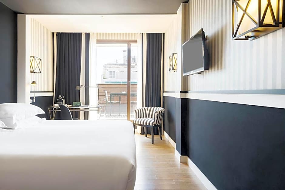 Decorated in stylish black and white, this air-conditioned room has a private balcony overlooking Aragó Street or a quiet internal courtyard. It offers free Wi-Fi, a laptop safe and an LCD TV. The modern bathroom includes exclusive toiletries, bathrobes and a hairdryer.
